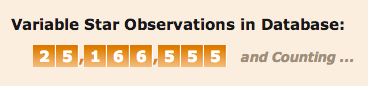 The AAVSO International Database has over 25 million variable star observations going back over one hundred years. It is the largest and most comprehensive digital variable star database in the world. Over 1,000,000 new variable star brightness measurements are added to the database every year by observers from all over the world. Professional astronomers, educators, students and amateur researchers around the globe use these data.