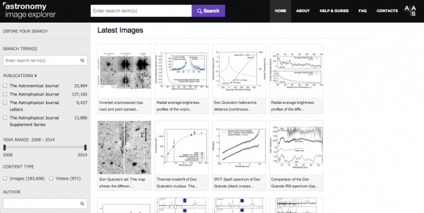 IOP Publishing (IOP) and the American Astronomical Society (AAS) are pleased to announce the launch of theAstronomy Image Explorer (AIE). The AIE provides researchers with quick and easy access to hundreds of thousands of images, illustrations, graphs, charts, and videos that have been published in peer-reviewed journals. The AIE has tools designed to aid researchers in their discovery and use of all types of graphic resources and is available free online to scientists and the public alike.