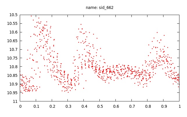 Attached are a phase plot and two nights of photometry data on an unreported pulsating star found by my GPX survey that appears to have a beating waveform light curve from two frequencies. The period of the phase plot is 0.40 days. Does anyone know a well-known representative variable star that I can read about that looks like this star's lightcurve?