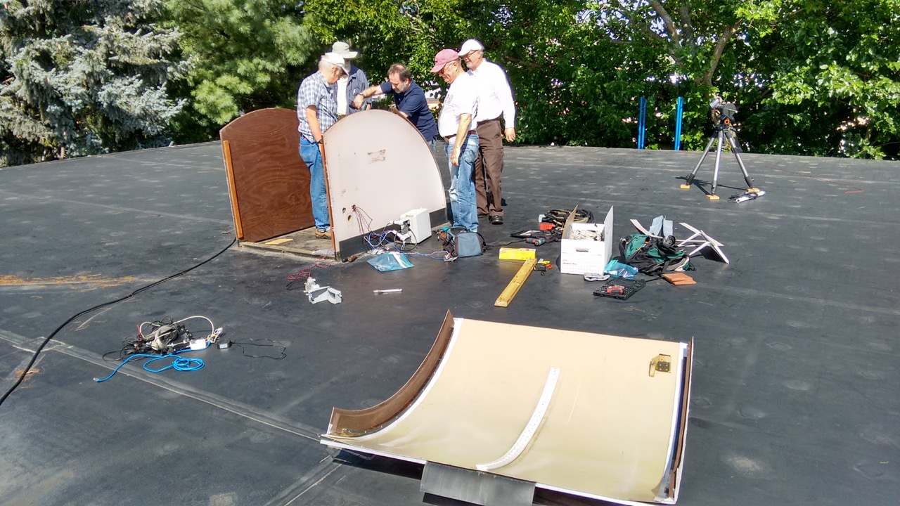 On Saturday, a work party consisting of Gary Walker, Helmar Adler, George Silvis, Ken Menzies, Bill Toomey and myself dismantled BSM_HQ and removed it from the roof of headquarters. Sometime later this fall, after some refurbishment, the system will resume operation from my home in New Hampshire. The sky availability will be less, but the skies will definitely be darker! Many thanks to the volunteers that made this happen.