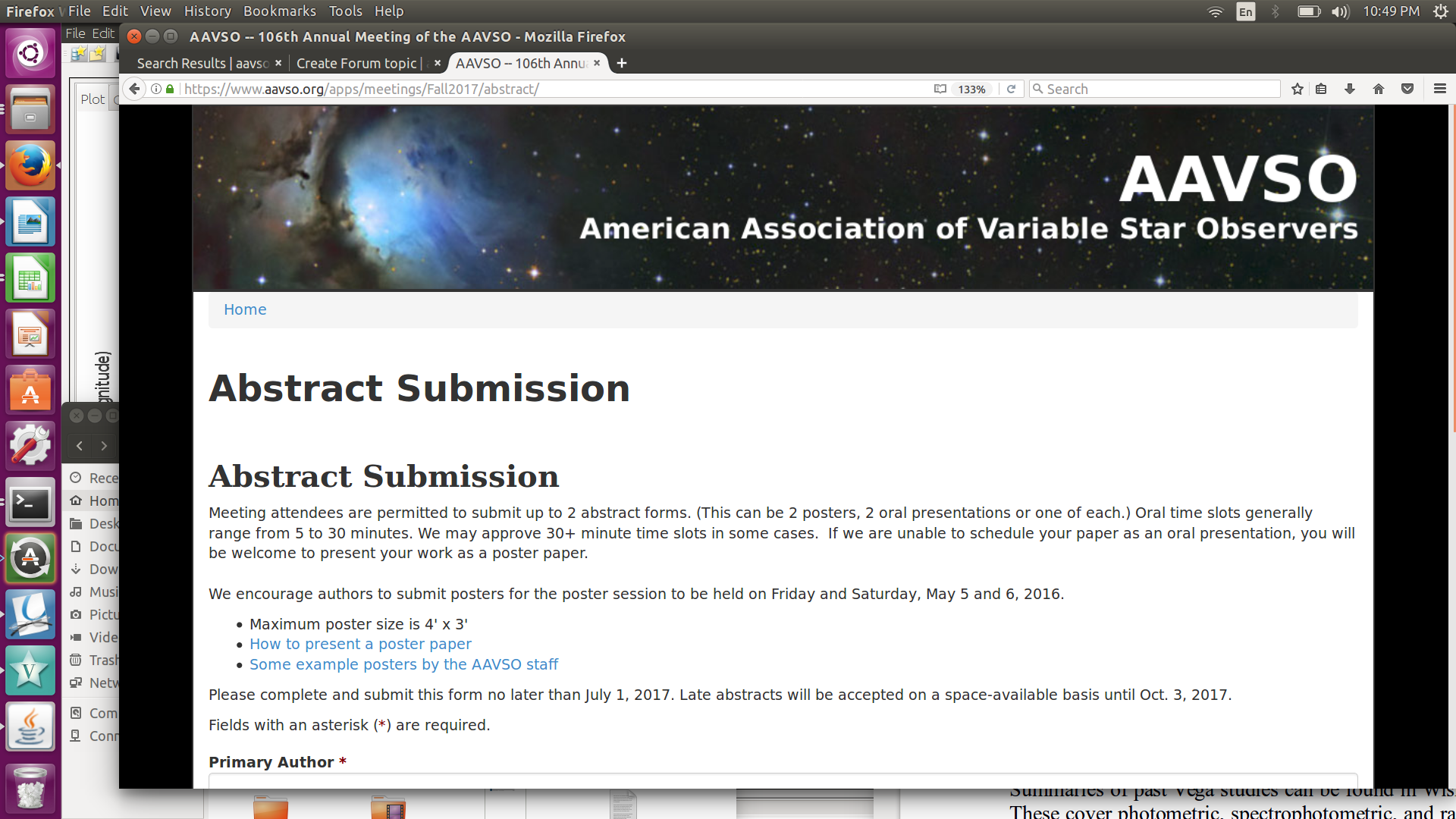 I registered for the meeting today, and, during the sign-up process, was rather surprised to see that the deadline for submitting abstracts was July 1.  I was even more surprised to see that the poster sessions at the meeting would take place on May 5 and 6 of 2016.  See attached screen shot.
