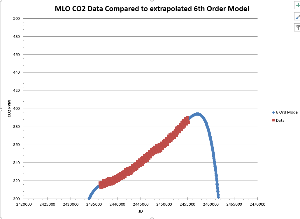 By the way this is data of monthly atmospheric CO2 measurements. I think it would be helpful to have a plug-in that would plot the data and the model over a time period having a user selectable extension beyond the ends of the data. Having such a view