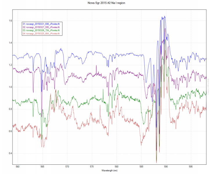 Here is a set of four spectra from last week of the region 5600-6000:
