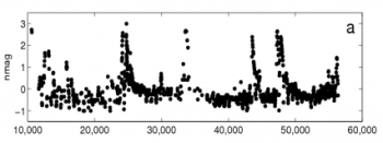 We analyze the last 125 years optical light curve of the symbiotic star AX Per through some remarkable correlations that we discovered in its power spectrum. The data were assembled from the literature and from the AAVSO database. We suggest, following others, that the major outbursts of the system result from events of intense mass loss from the giant star.